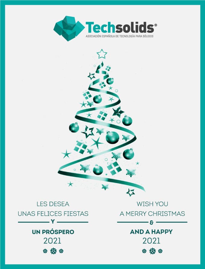 ¡Los socios de TECHSOLIDS (ASOCIACION ESPAÑOLA DE TECNOLOGIA PARA SOLIDOS) te desean una Feliz Navidad y un Próspero Año Nuevo 2021!