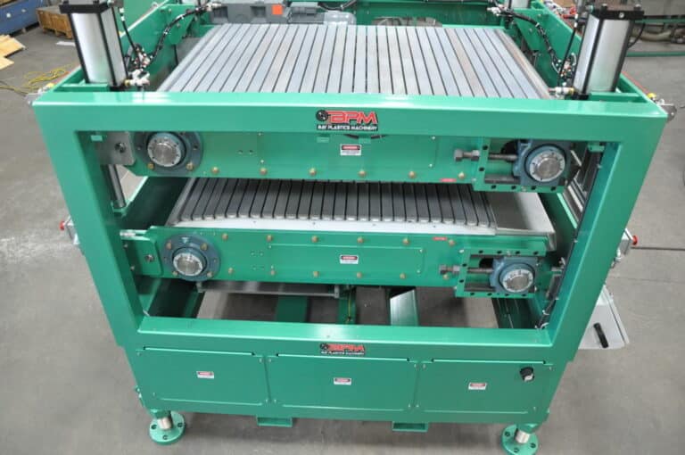 Bay Plastics Machinery ha diseñado este arrastrador para manejar eficientemente una amplia gama de polímeros reforzados con distintos tipos de fibras. La Serie P complementa la gama de peletizadoras para pultrusión de Bay Plastics Machinery. El modelo de mayor tamaño de esta serie acepta hasta 40″ (1016 mm) de ancho total de hebras alineadas sin solapamiento. La cantidad máxima de hebras depende del requerimiento total de tensión o del apilamiento físico lateral de las hebras.