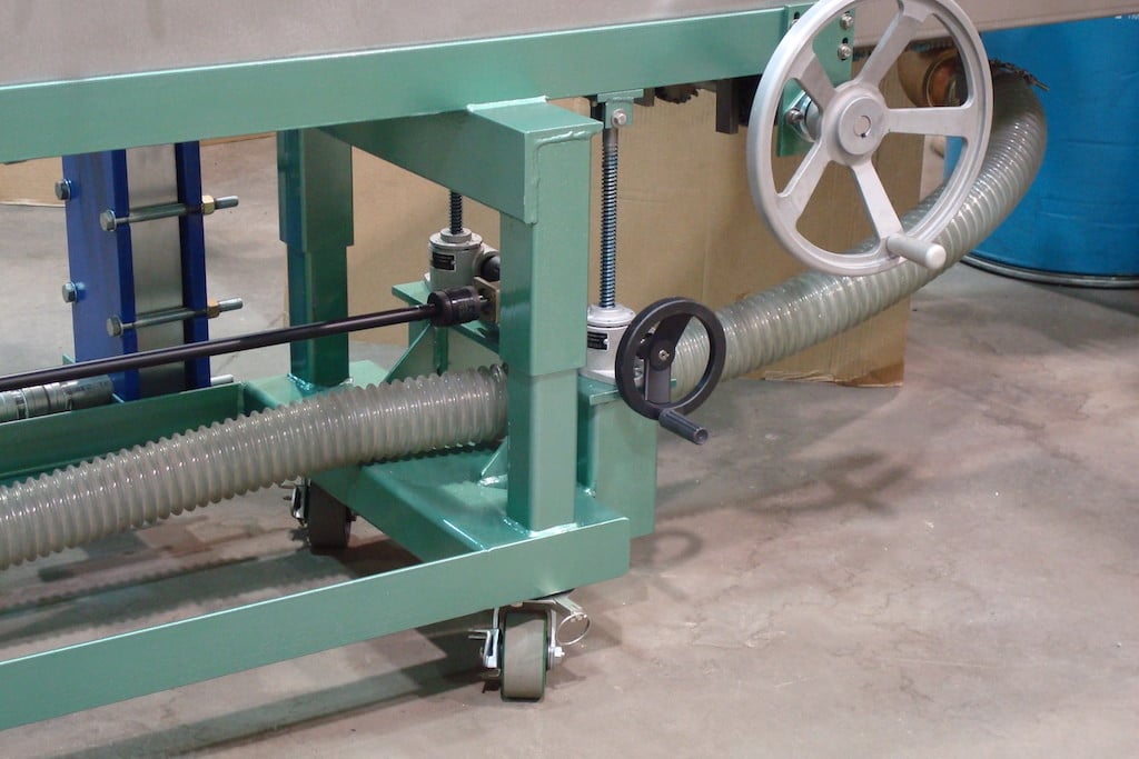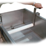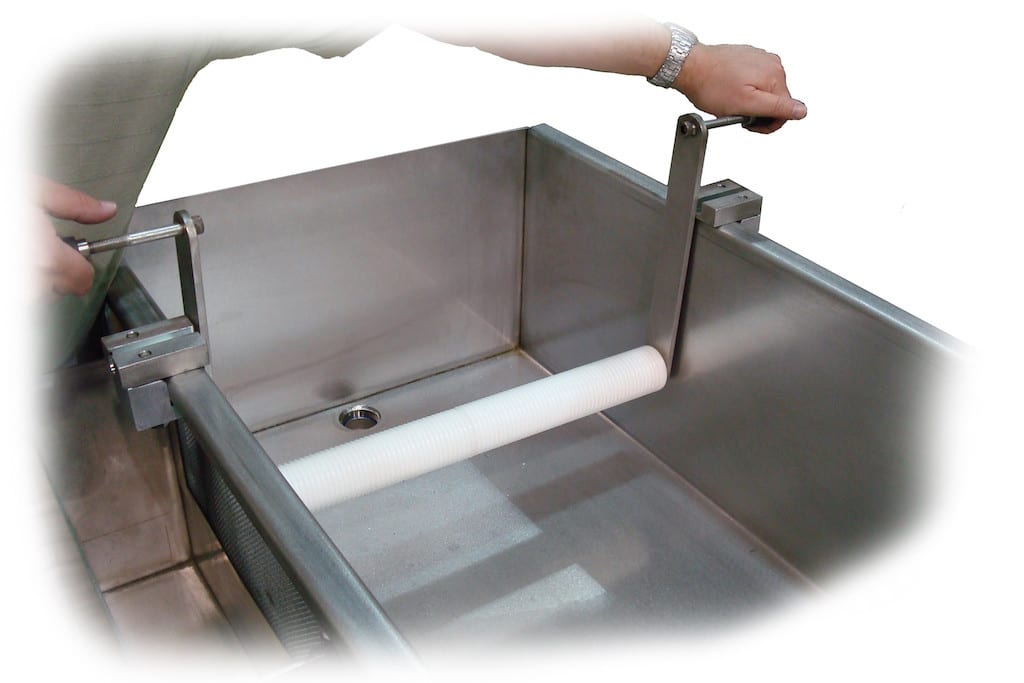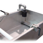 La serie BPM WBX de baños de agua incluye de serie patas ajustables, lo que permite adaptar el equipo a diferentes peletizadores y extrusoras. Están especialmente diseñados para peletización en línea vertical e incluyen barras de presión con cierre rápido y bloqueo, que garantizan que las hebras se mantengan rectas y uniformes. Los rodillos de 2″ de diámetro de estas barras están ranurados para alinear las hebras y fabricados en UHMWPE (polietileno de ultra alto peso molecular), lo que reduce la fricción entre el rodillo y las hebras. Un baño de agua estándar puede incorporar entre tres y cinco barras de presión, según su longitud.