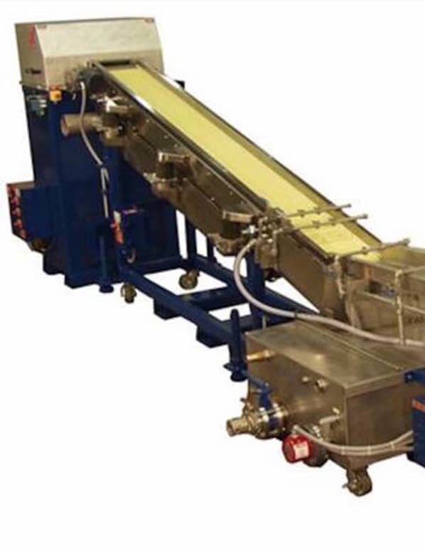 Estas cintas son autoalineables, lo que facilita al máximo las operaciones de arranque y producción. Además, ofrecen una gran versatilidad, ya que pueden adaptarse a una amplia variedad de extrusoras y toboganes de agua, tanto de nuestra fabricación como de otros fabricantes.
