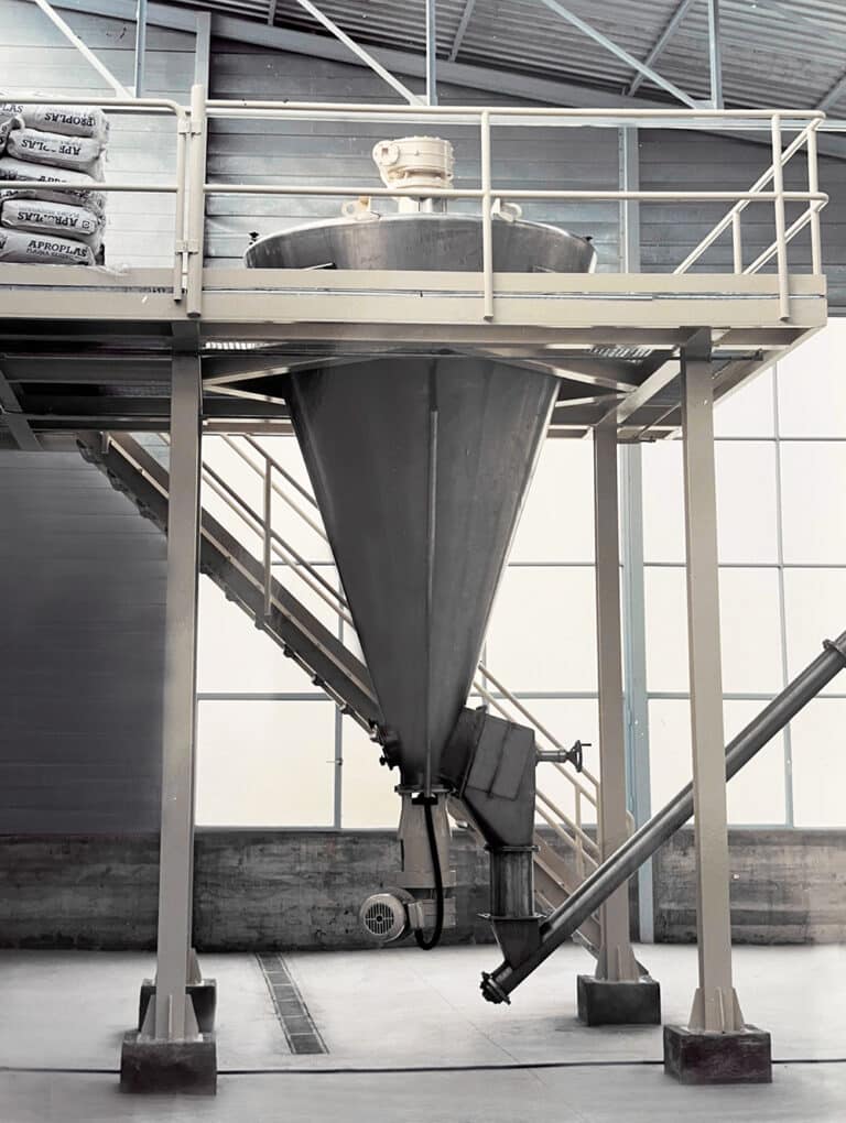 El mezclador cónico vertical se compone de un recipiente con sistema de mezcla por tornillo sinfín que recorre todo el volumen del cono, realizando un flujo ascendente del producto.