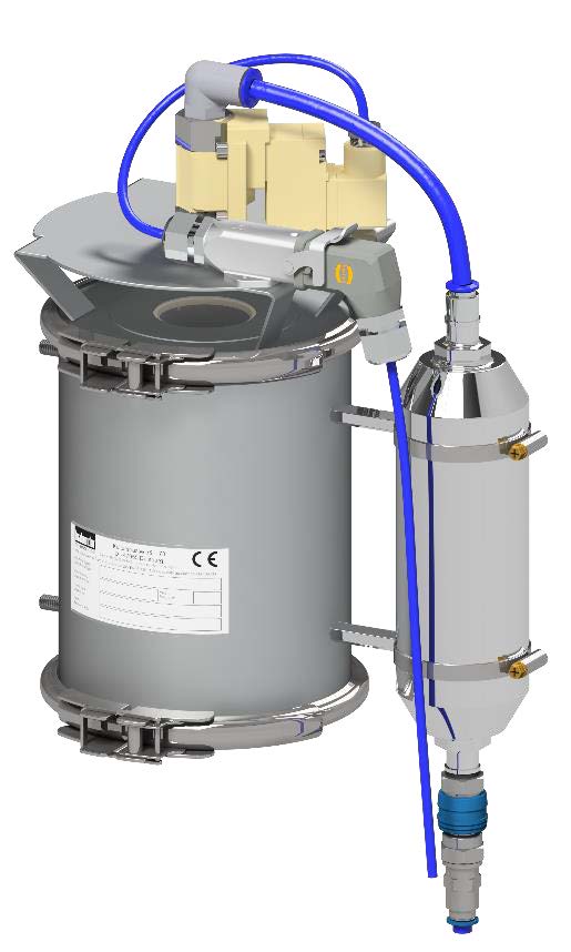 El polvo atrapado es automáticamente limpiado por pulsos de aire (el polvo vuelve a caer en el dosificador, eliminando perdidas de material).