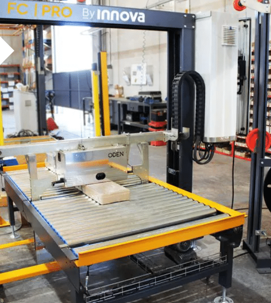 Su avanzada tecnología permite alcanzar una producción de hasta 10 flejadas por minuto, integrándose fácilmente en procesos de encajado y paletizado gracias a su robusta estructura anclada al suelo y su intuitivo panel de control.