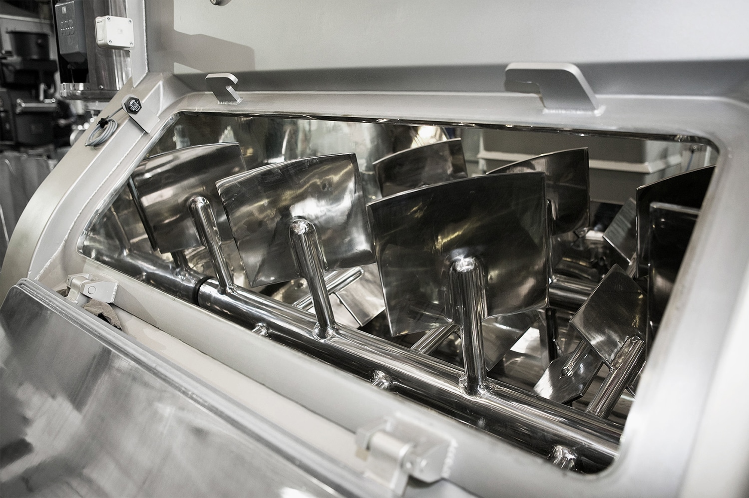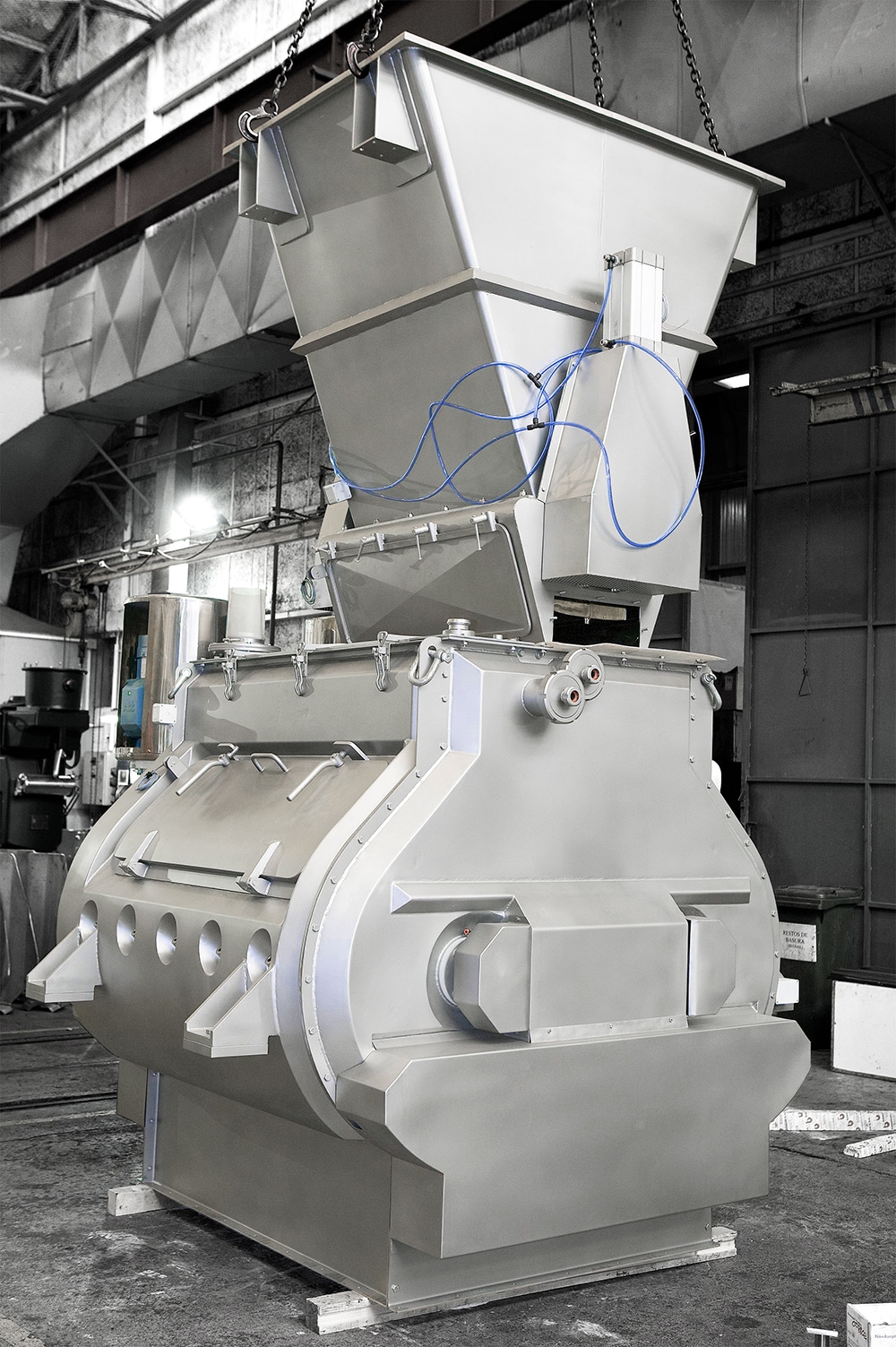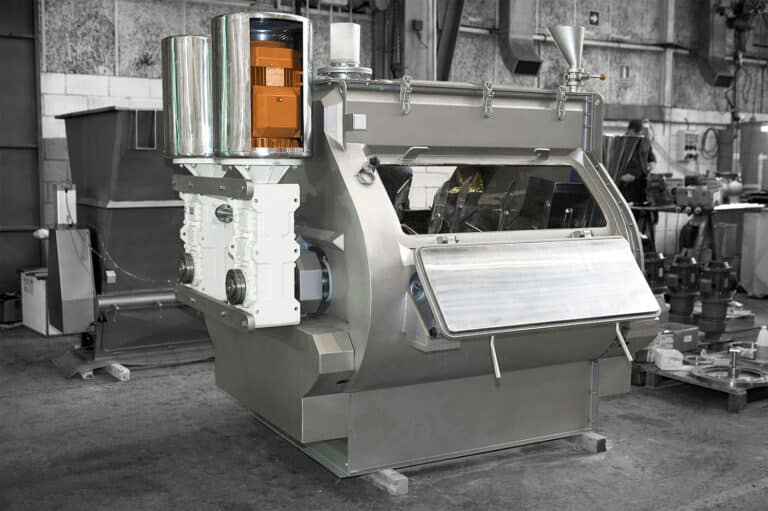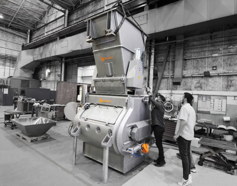 El mezclador de palas de doble eje está provisto de dos ejes con palas a contra-giro, que producen dos intensos flujos ascendentes de producto, generando una zona de ingravidez con un intenso efecto de mezcla.