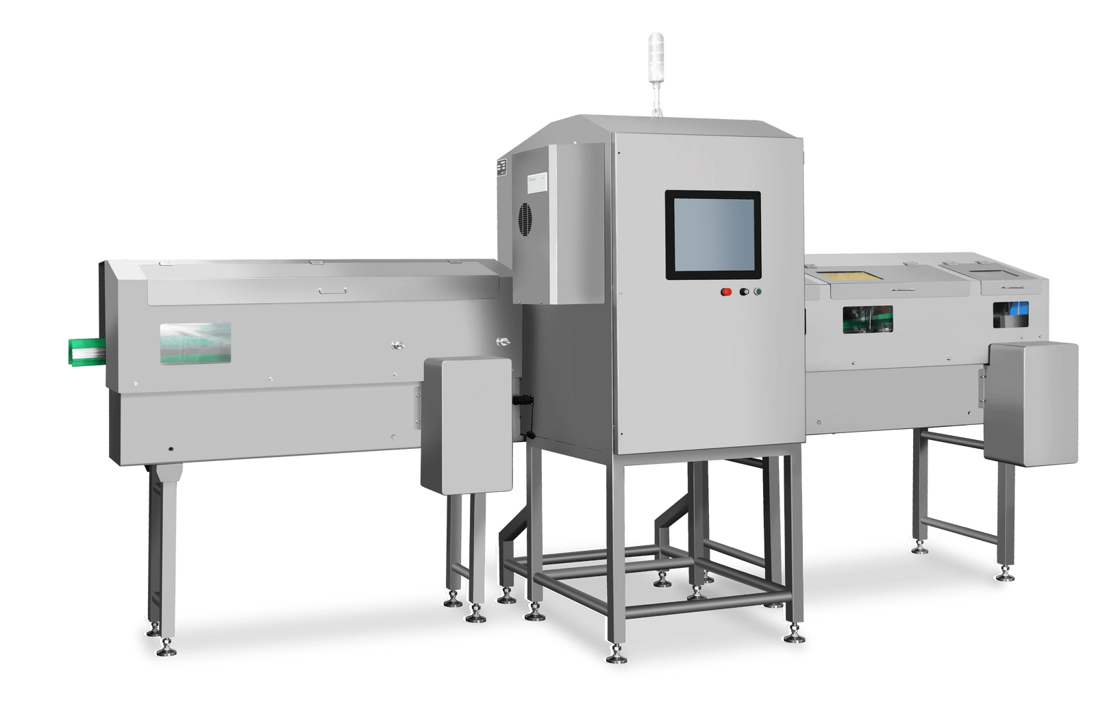 Detección de contaminantes orgánicos y no orgánicos de tamaños inferiores y superiores a 0,3 mm, inspección de restos de huesos, espinas y sellado, así como reconocimiento de color, control de llenado, análisis de contenido de grasa, pesaje, etc.