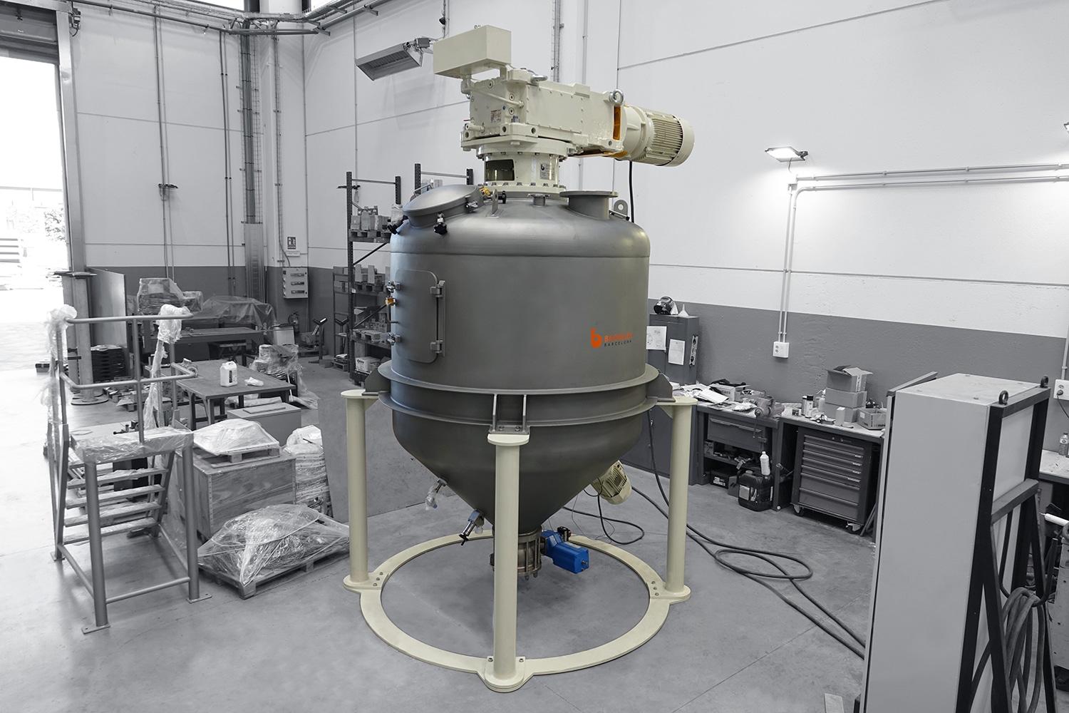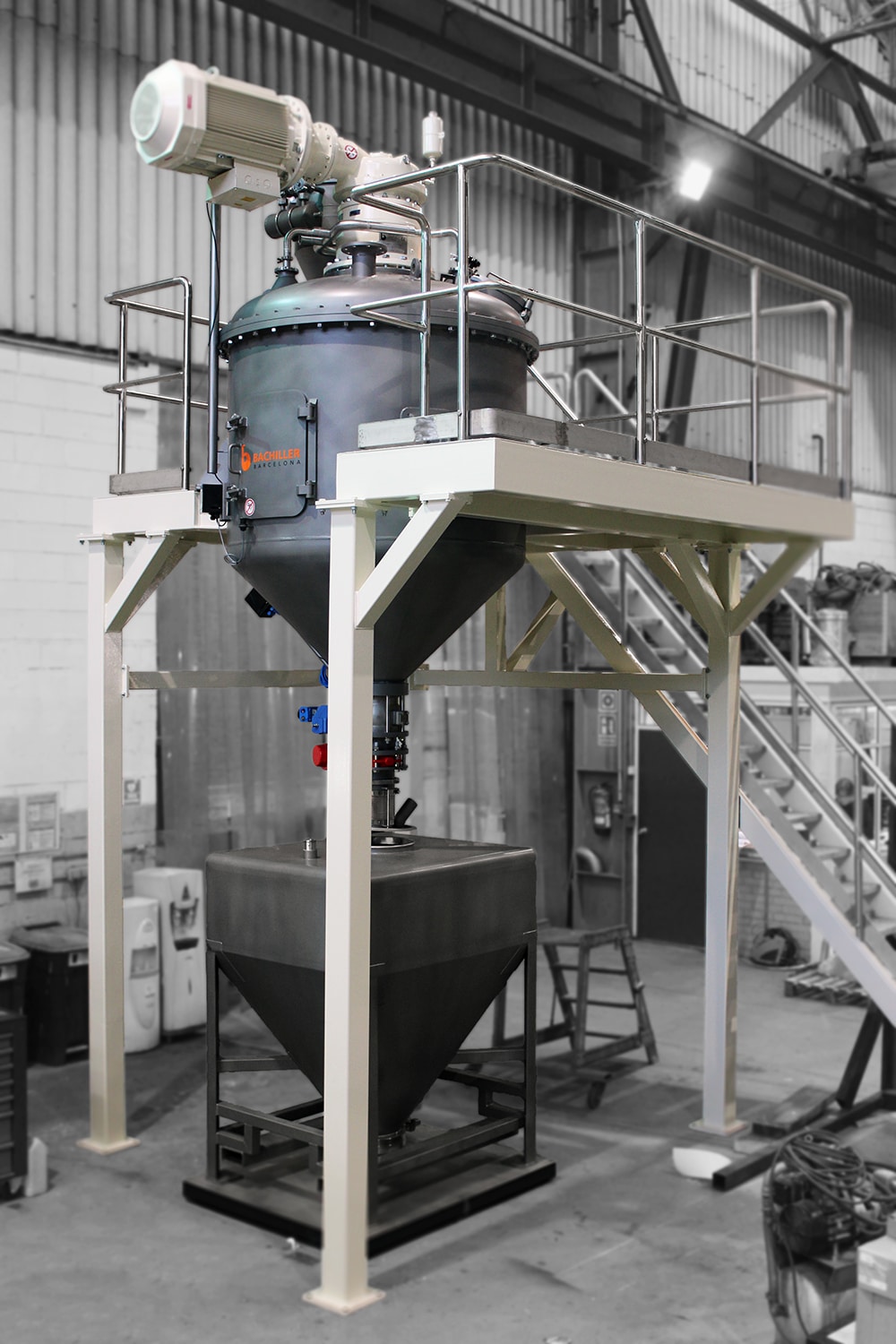 El SUPRAMIX es un mezclador industrial de espiral vertical para sólidos, especialmente indicado para el mezclado y la homogeneización industrial de productos pulverulentos y de granulometrías similares en tiempos cortos, respetando la morfología de los productos y con un vaciado total. Permite la adición de líquidos en el proceso.