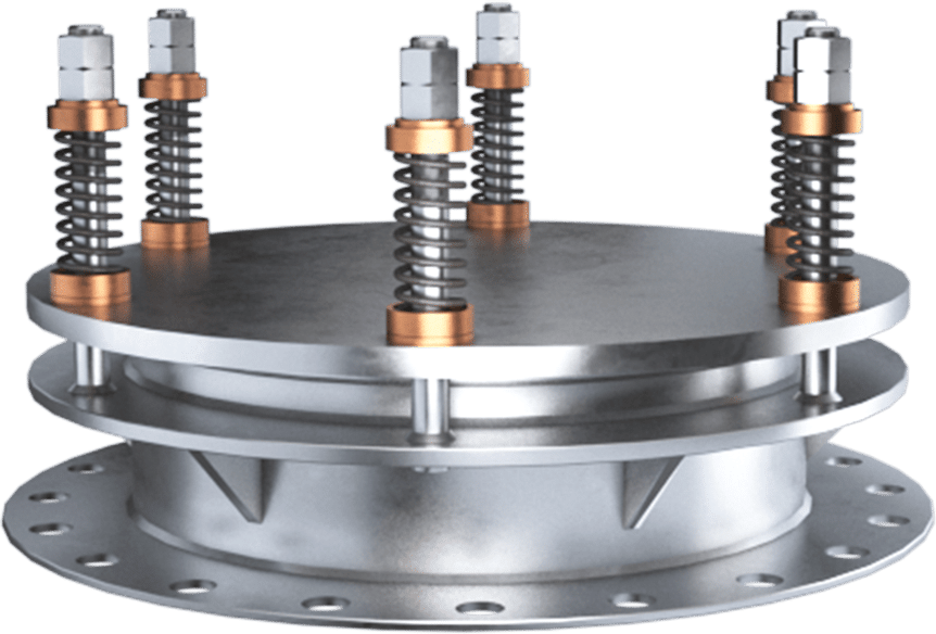 La tapa de cierre se mantiene en su posición mediante un resorte helicoidal calibrado. La acumulación de presión en el tanque superará la resistencia del resorte y el peso del cierre, lo que hará que se abra lo suficiente para permitir que la presión interna se disipe, evitando así el riesgo de ruptura o explosión del tanque. Se cerrará automáticamente cuando se reduzca la presión interna.