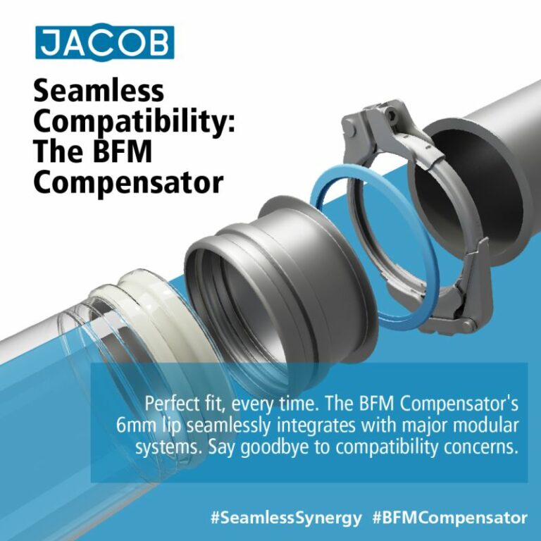 JACOB ofrece TUBERIAS METÁLICAS en 1, 2 y 3 milímetros y diámetros que abarcan desde los 60 hasta los 630 mm dentro de la gama estándar; en la gama de sistemas con brida atornilla desde DN 80 hasta 1600 mm. La principal ventaja de esta tubería, es que puede ser montada y desmontada sin utilizar ninguna herramienta gracias al sistema de abrazaderas de conexión rápida patentado QUICK CONNECT, que permiten acoplar junta de EPDM, Silicona, NBR o Viton, para una mejor estanqueidad.