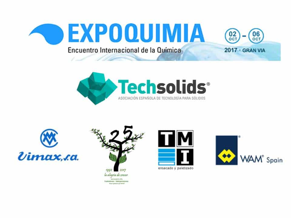 Posteriormente Techsolids participará en la feria de EXPOQUIMIA (del 2 al 6 de octubre de 2017 en la Fira de Barcelona)  en el estand número F 125 junto con las empresas socias TMI, Vimax, WamSpain y Tecnovent.